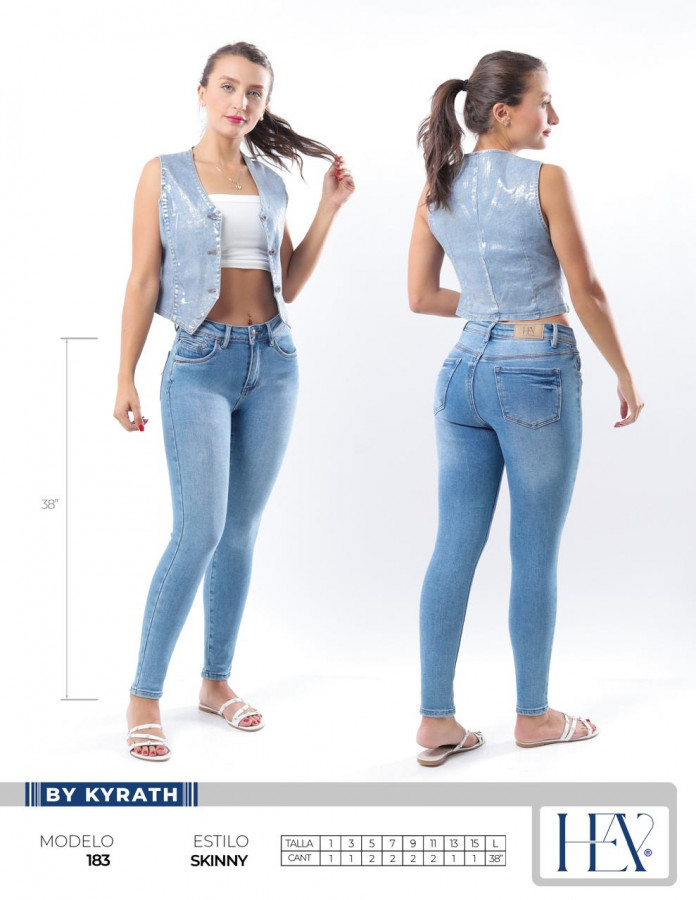 Elaborados con mezclilla de la más alta calidad, el Modelo 183 ofrece un ajuste skinny que moldea tu figura de manera impecable, realzando tus curvas y proporcionando una silueta estilizada. Su tejido elástico garantiza una comodidad excepcional, permitiéndote moverte libremente y disfrutar de tu día a día sin restricciones. Ya sea para un look casual de fin de semana o una salida nocturna, estos jeans se adaptan a cada momento.