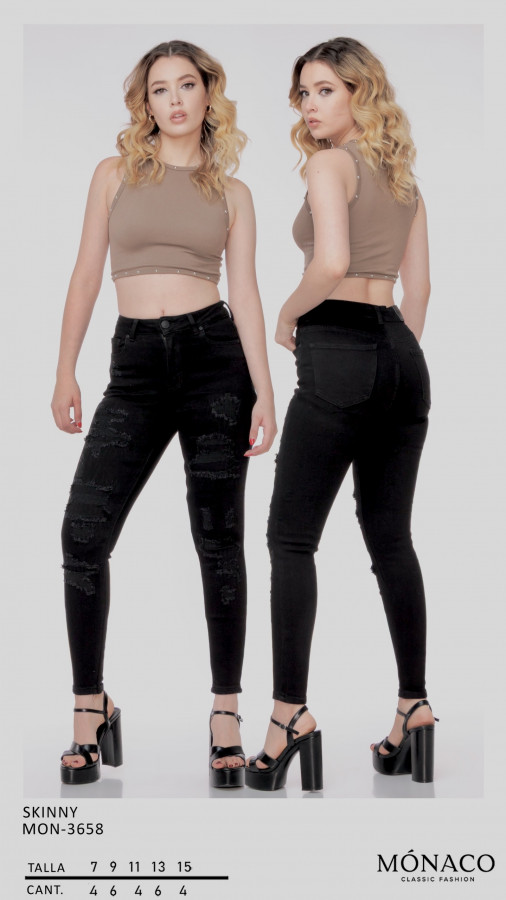 Pantalón Mónaco de dama de mezclilla de moda.